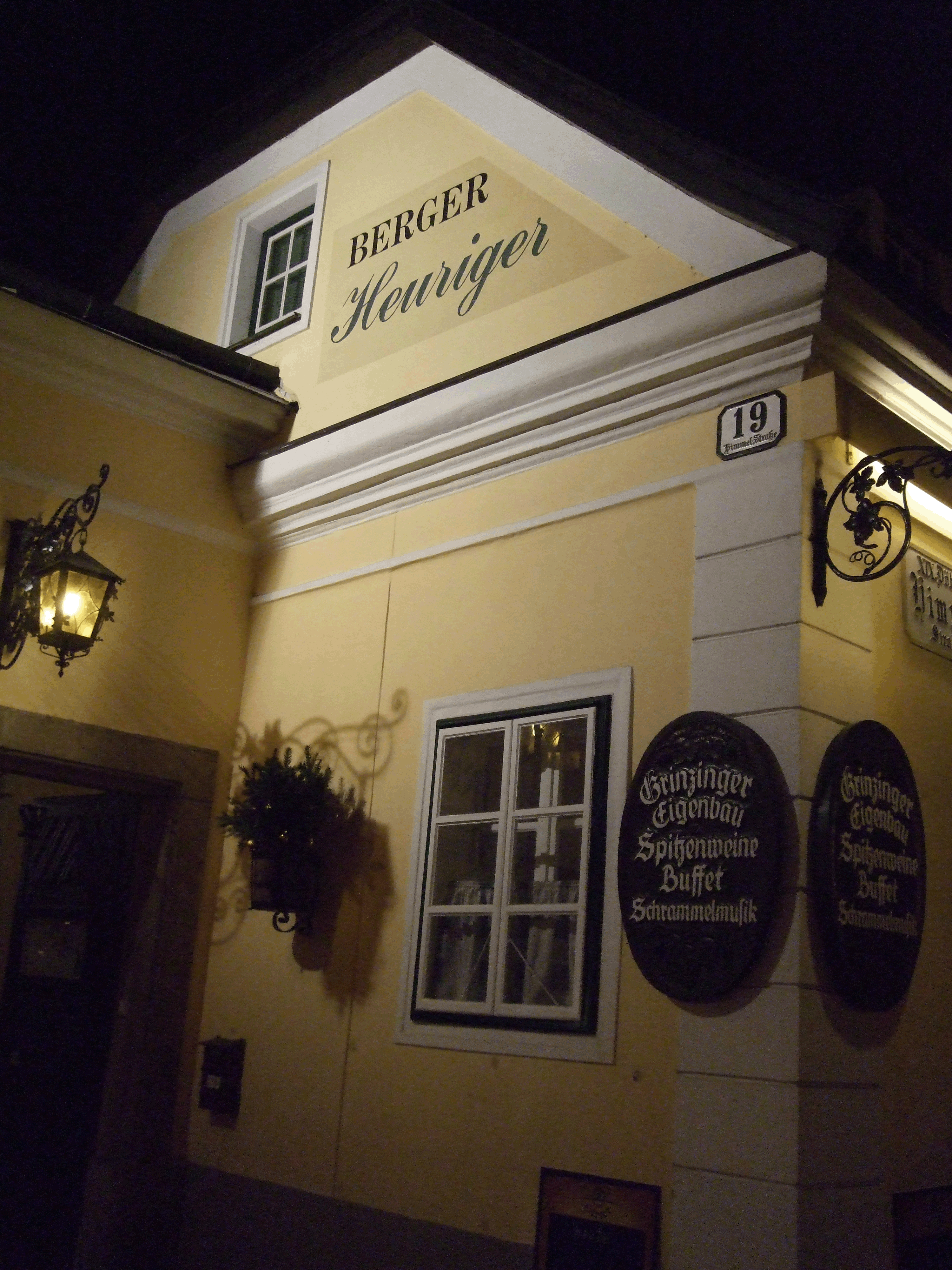 ぐっすり眠って、夕方に起きて、ホイリゲに出かけた。Rathausから Schottentor-Universtat駅を経て、Grinzingへ。グリンツィングは、ウィーン北部にあり、ホイリゲという新酒を出す店が集まっている。グリンツィングに着くと、駅から一番近いホイリゲに入った。