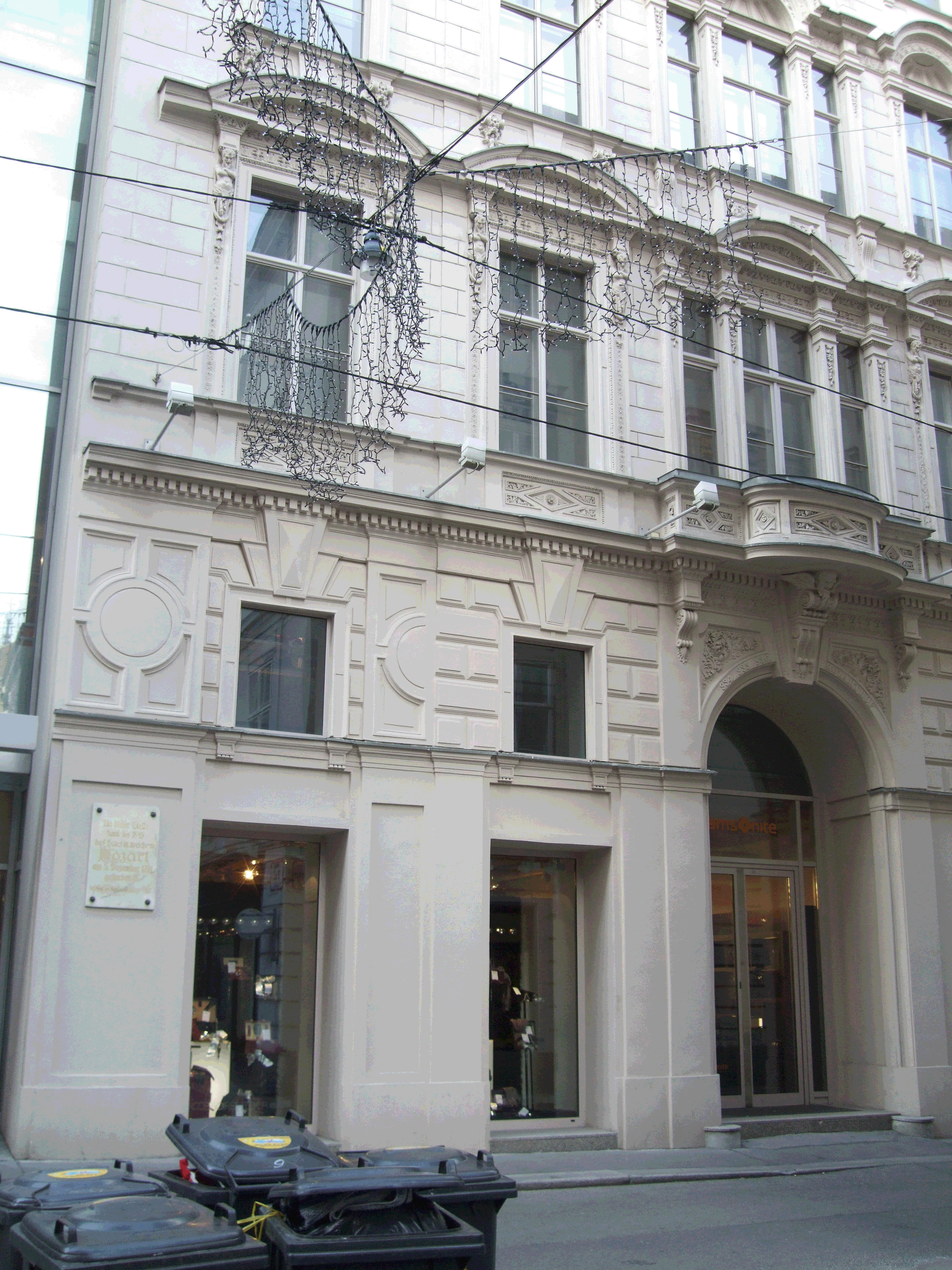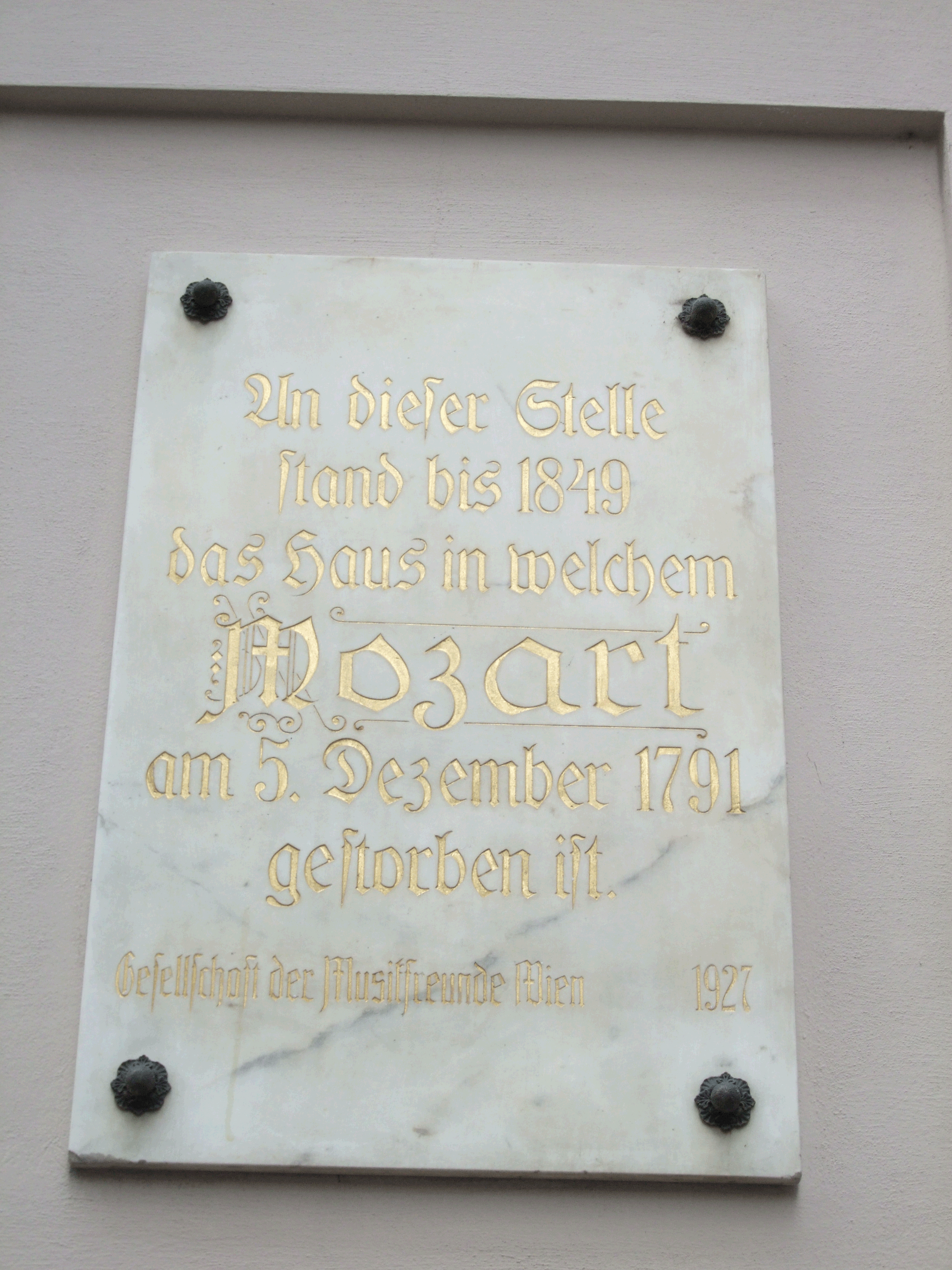 続いてシュテファン寺院北西部にある Rauhensteingasseにモーツァルト最期の家を訪れる。ショップとなっている建物に、モーツァルトの名前の銘板を見つけた。