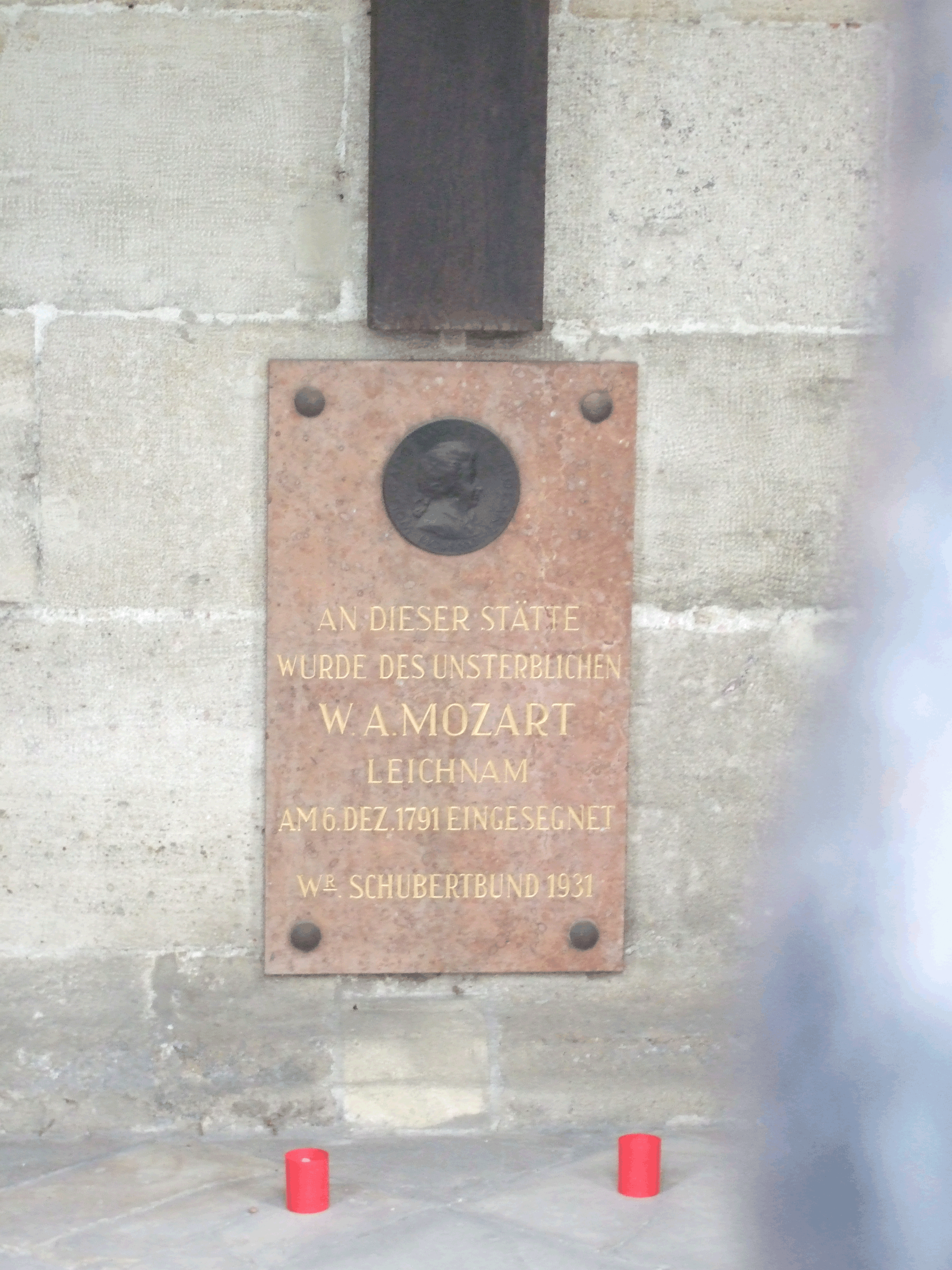 シュテファン寺院に戻り、モーツァルトの葬儀を行った祭壇を見る。入り口に頑丈な鉄格子が付いている。銘板のおかげで、その場所がそうであると確認出来た。これでモーツァルトの死の前後に関する施設を訪れるという、今回の旅の目的の一つを果たした。彼の晩年の不遇と、ウィーンの厳しい寒さが重なった。