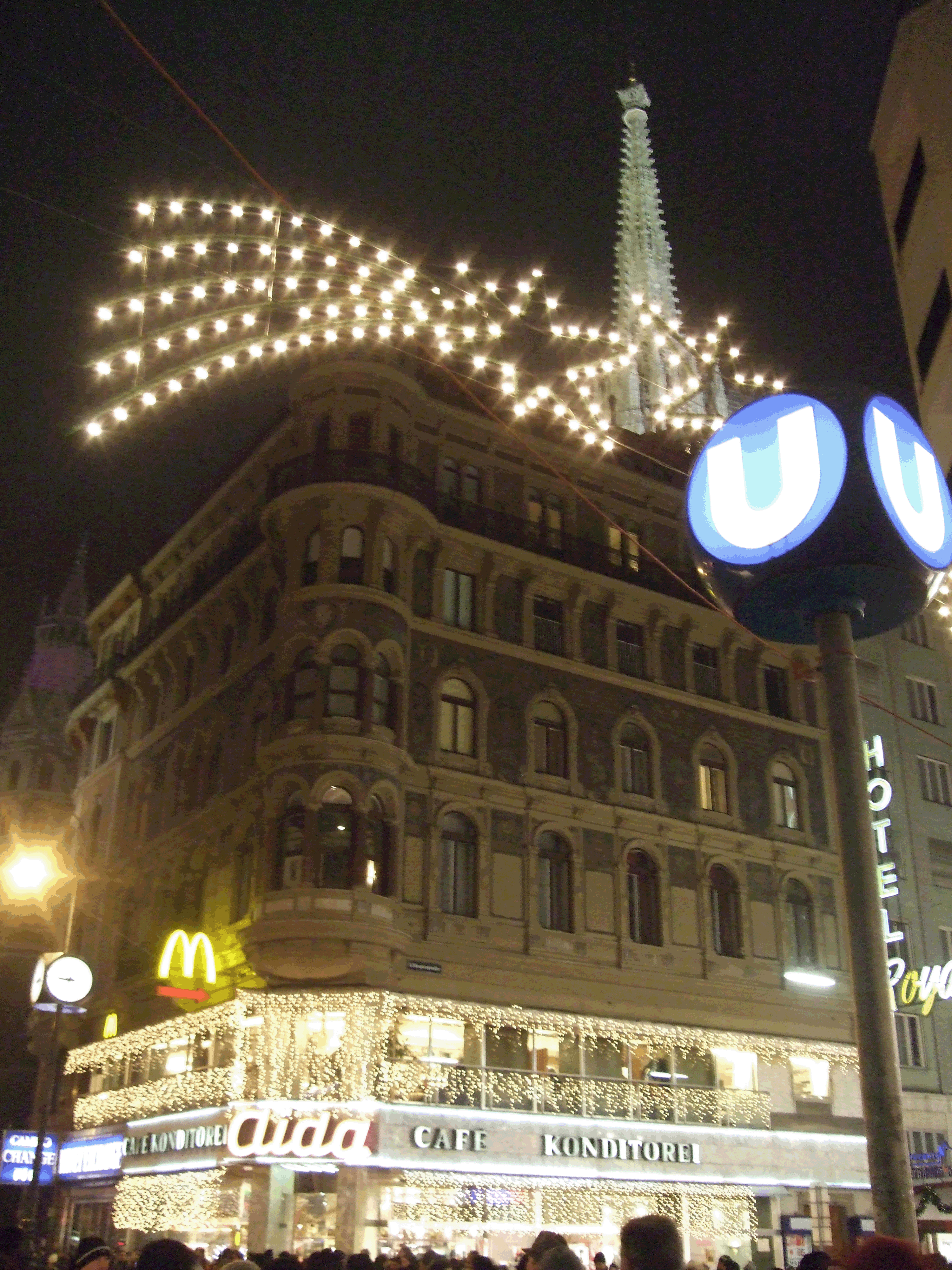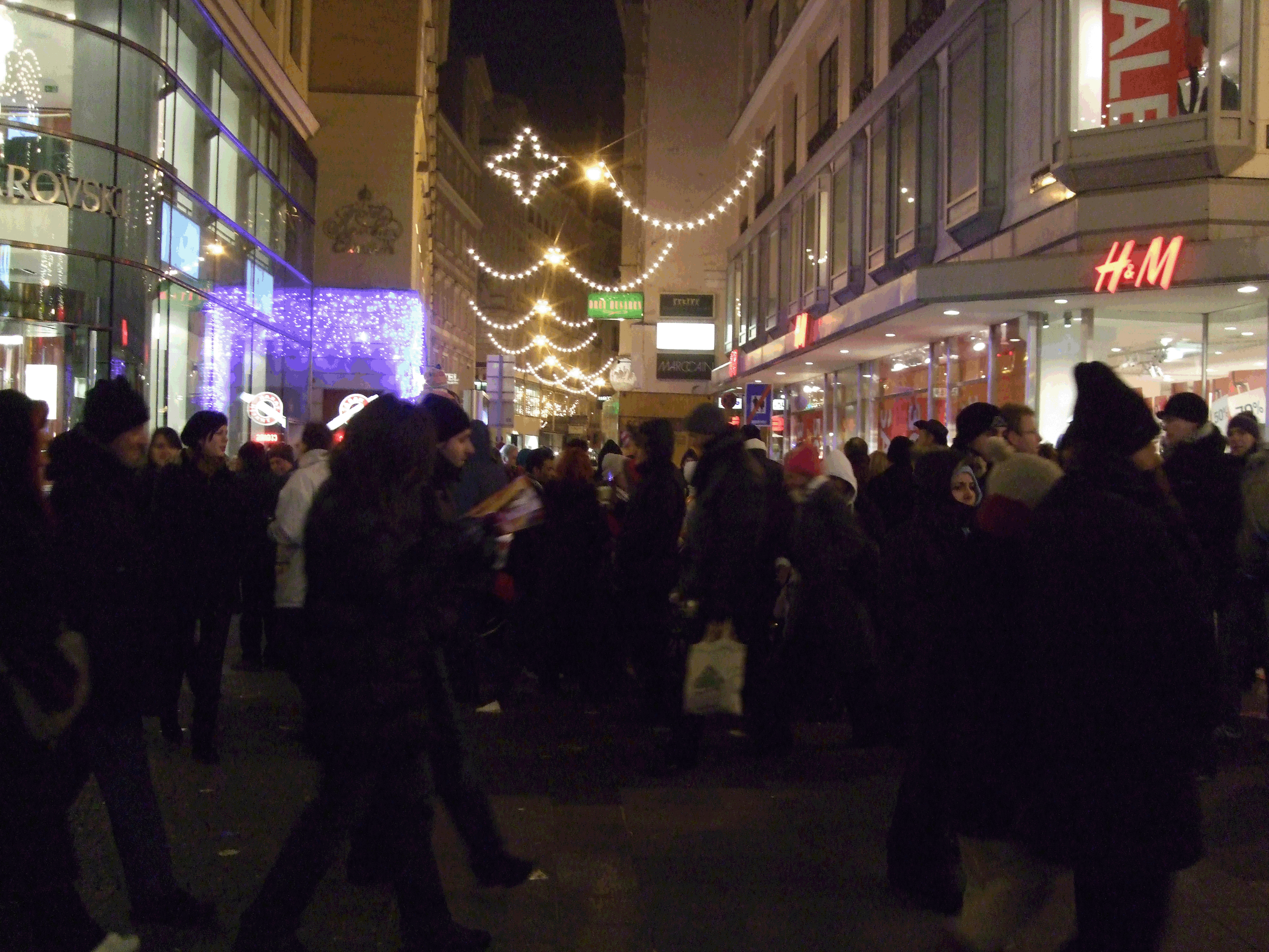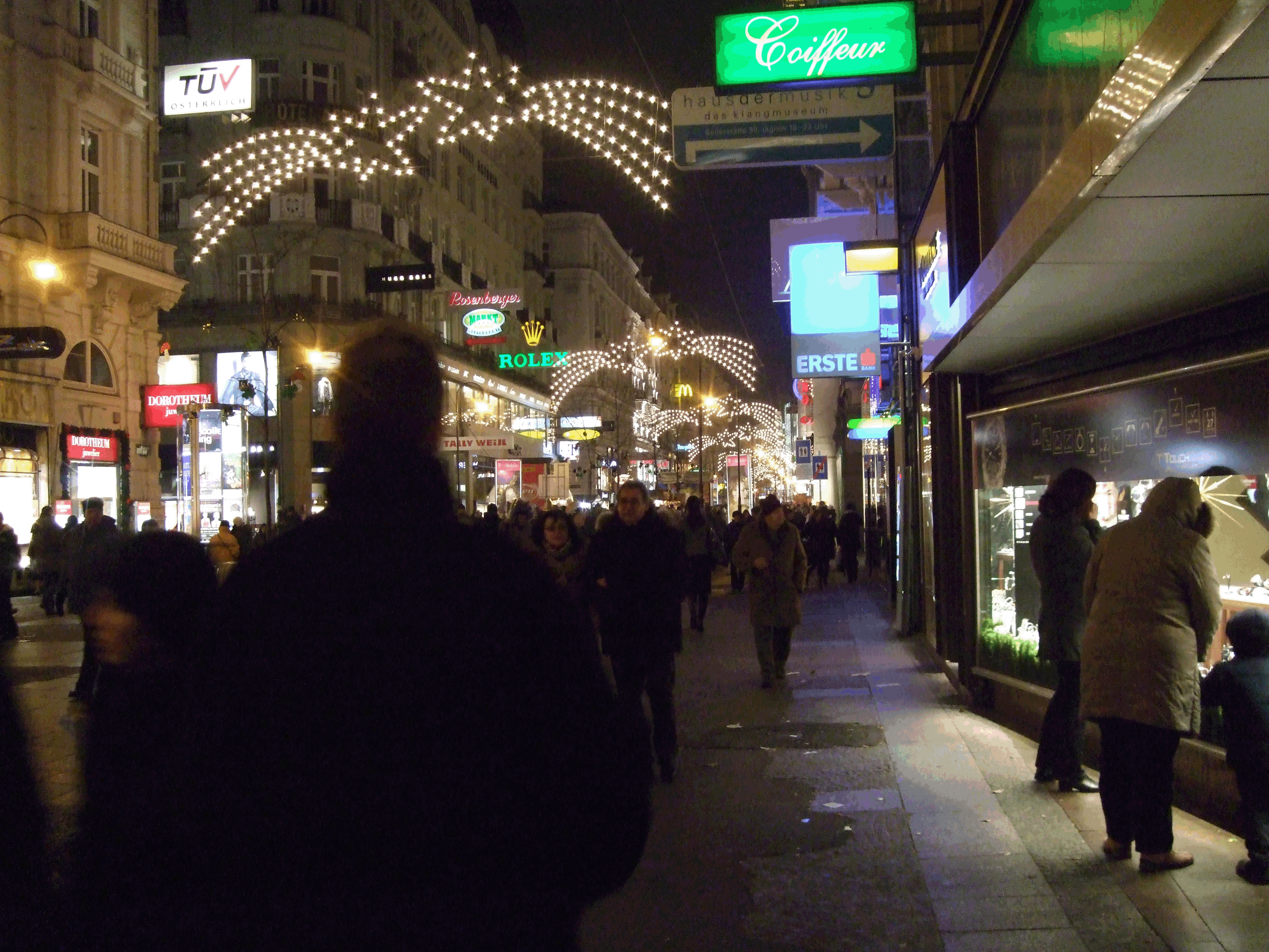素晴らしい演奏に満足して、ケルントナー通りに出かけると、イルミネーションに溢れ、若いカップルだらけだった。一方で、乞食も多かった。人々の心が大きくなっているときは、施しを受けやすいからだろうか?この耐えがたき寒さのなか、土下座して素手を差し出す彼らを見て、とても切ない気持ちになった。