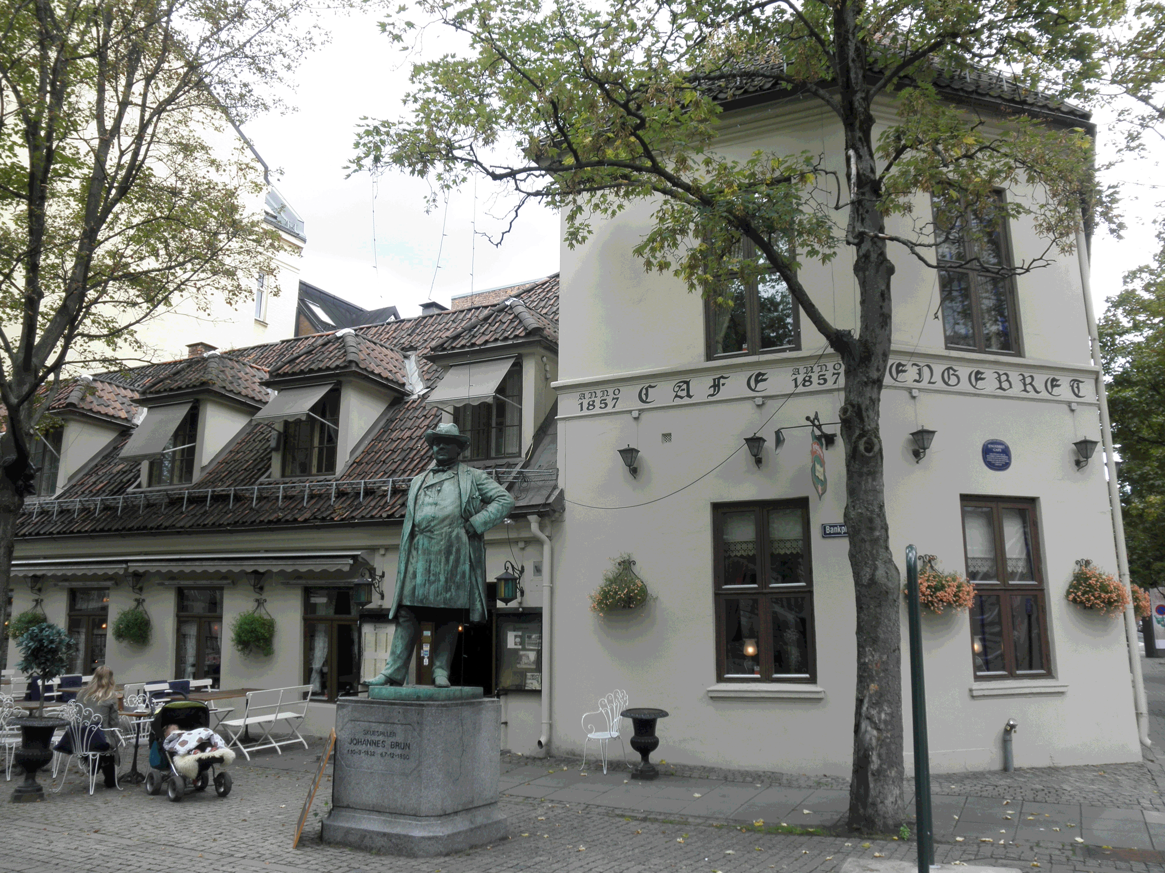 夕食は、エンゲブレト・カフェという店でとった。前菜の数品の中には、刺身もあり、ワサビが添えてあった。まるで日本の刺身のようだなと思ったけれど、少し味付けしてあり、醤油は不要だった。メインはトナカイ肉のステーキ。メニューがノルウェー語と英語しかないので、どれがトナカイかわかりにくいが、「reindeer」と書いてあるものを選べば大丈夫だ。トナカイは、脂身のない牛肉を食べているような味がした。シャンパン、白ワイン、赤ワインの順にグラスワインを楽しんだ。