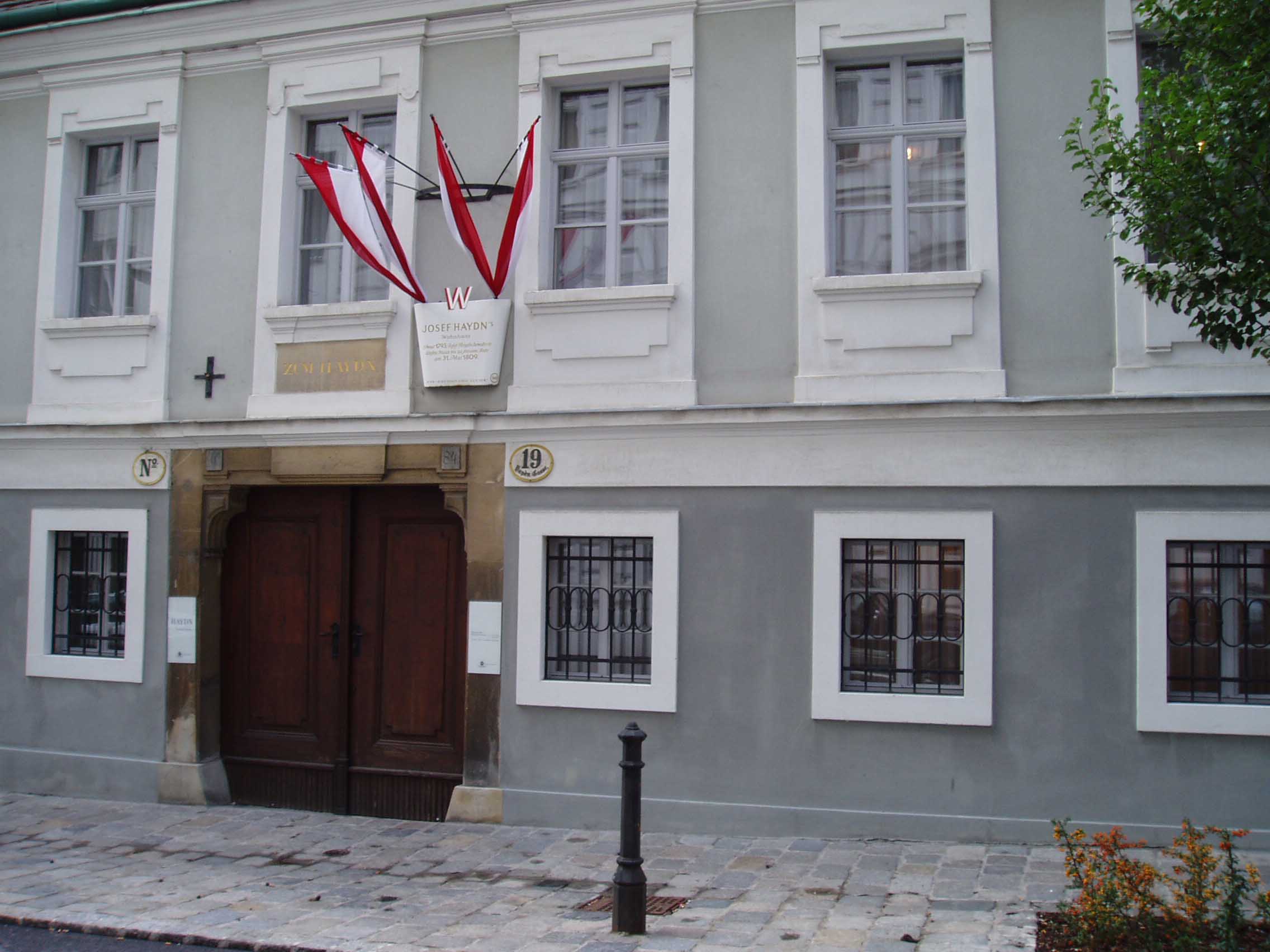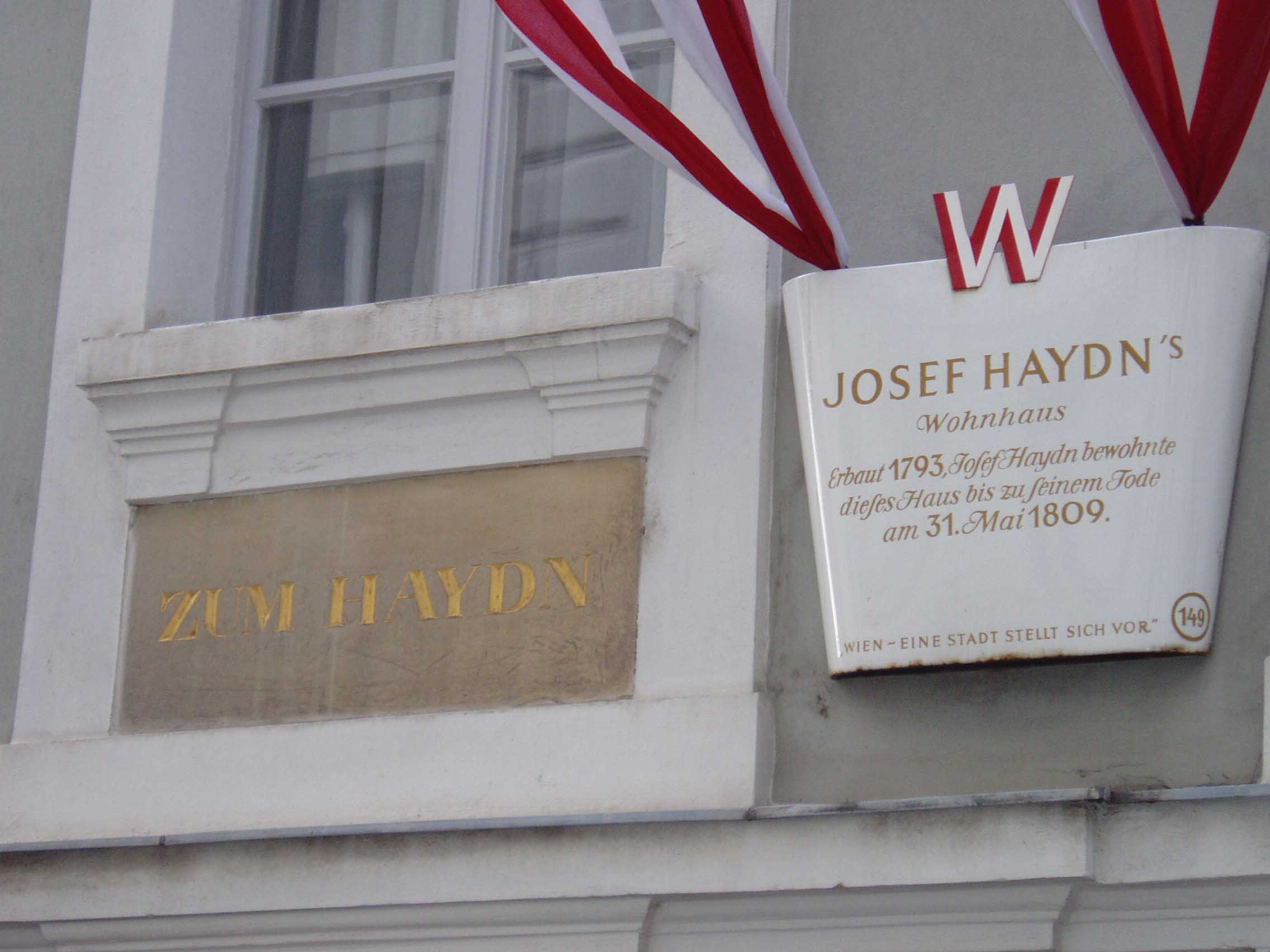 ウィーンに戻りまずWestbahnhof駅近くのハイドン記念館行 く。ここはハイドン最期の家であり、またブラームスに関する遺品もいくつか 展示されているのだ。ドアの上には、ハイドンの家であったことを示す銘板が ある。入るとハイドン自筆の楽譜などが展示されていた。彼の時代のチェンバロをみていると、チェンバロも時代により変化していく様が良くわ かる。結構広い家である。作曲家の住んでいた家に行くと、本当にその作曲家と同じ空間を共有しているかのような気分に浸る事ができる。同じ曲でも、そうし て聴くと作曲している演奏家の姿が浮かんでくるようだ。