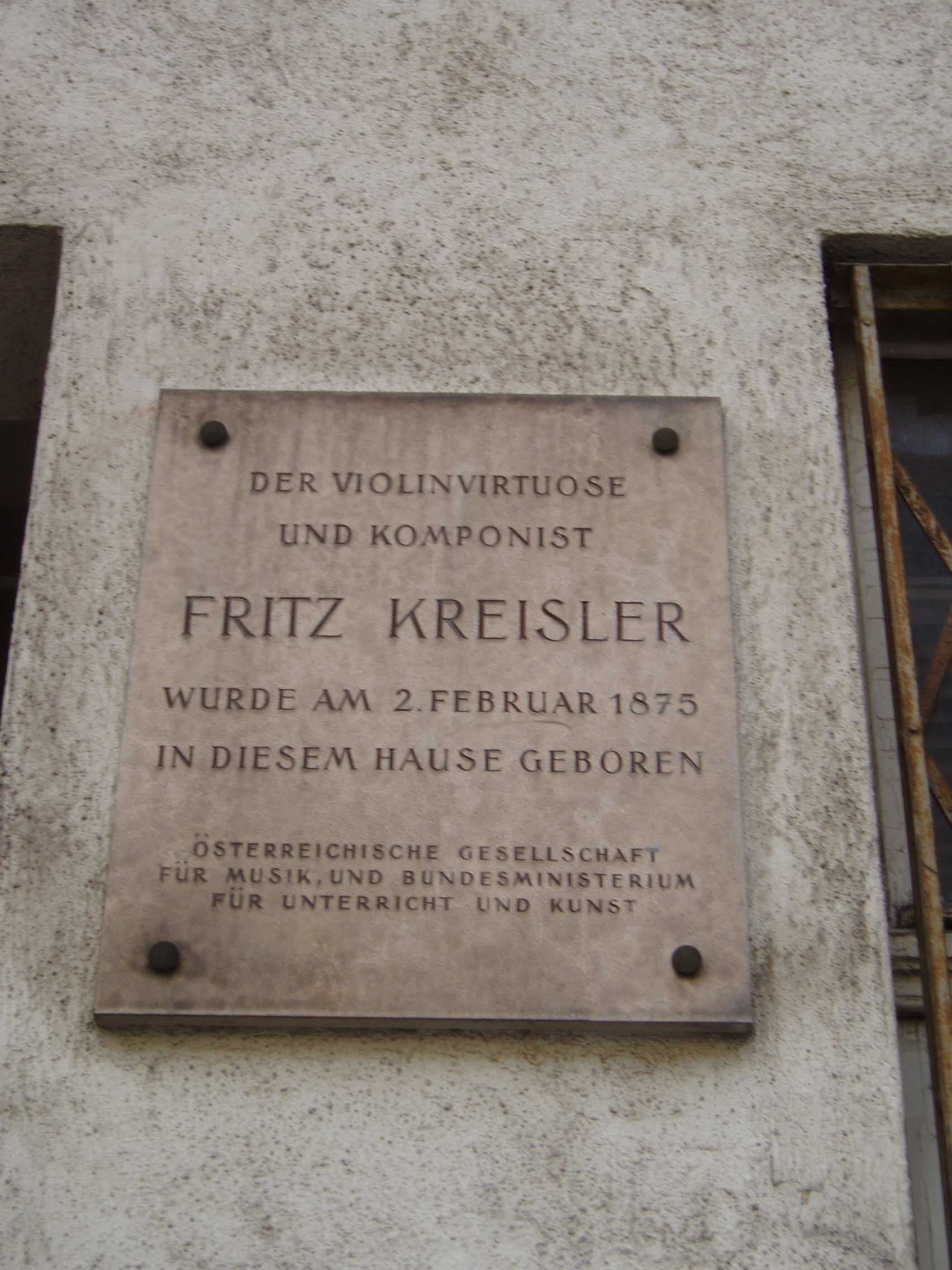 Nickelgasseのどちらかの通りを見つければ、その交差点に建つ家にたどりつく。「フリッツ・クライスラー」は「愛の歓び」「愛の悲しみ」「美し