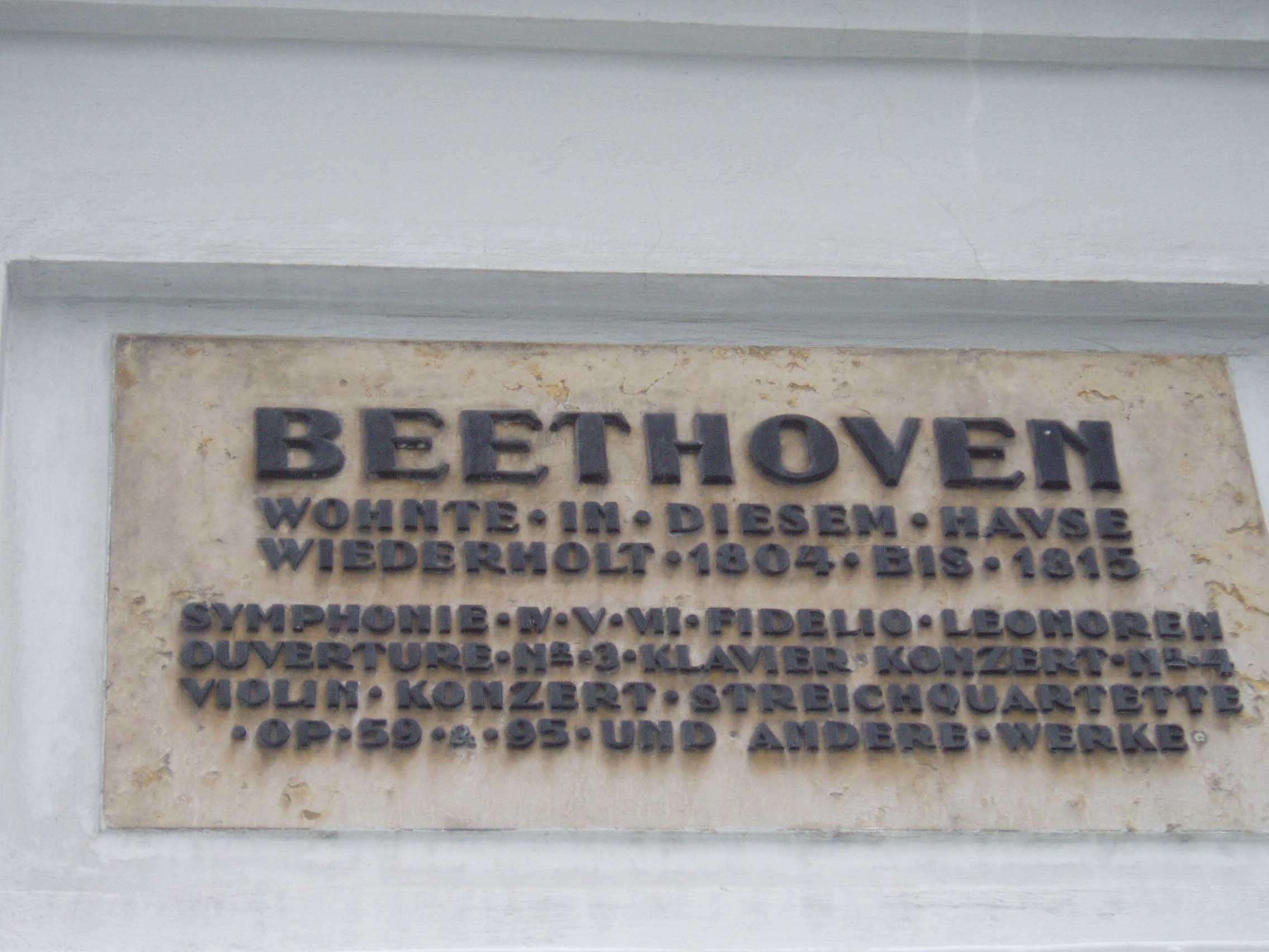 大学の玄関の向かいにベートーヴェンがかつて住んでいた家がある。 「Pasqualatihaus」と聞けばわかる人もいるかもしれない。家の玄 関からウィーン大学を見ると、間にはDr.-Karl-Lueger-Ringという通りと、金の彫像しかない。およそ50mくらい だろうか。引っ越し好 きのベートーヴェンが珍しく長期に渡って住み、「不滅の恋人」との恋愛真っ直中を過ごした家だ。銘板に「1804年から1815年にかけてたびたびベー トーヴェンがこの家に住んだ。交響曲第4、5、7番、フィデリオ、レオノーレ序曲第3番、ピアノ協奏曲第4番、ヴァイオリン協奏曲、弦楽四重奏曲作品 59、95、その他の作品」とある。胸を躍らせて中に入ろうとしたが、鍵がかかっている。インターホンの上にたくさんの名前があり、そのうち一つに 「Beethoven」と書いてあった。まさか「Beethoven」が住んでいるわけはないし、同姓の人かな?と思ったが、ここまで来て引き下がるつも りはなく、無理を承知でその部屋の番号のインターフォンを押してみた。「Hi!」と返事があり、「ベートーヴェンに会いに来ました。博物館は開いています か?」と伝えた。「今開けます」という返事とともに鍵が開いた。旅をすると、tryしてみることの重要性を痛感する。中に入ると、窓から大学周囲の景色が 一望できた。ベートーヴェンはこの景色を眺めながら、不滅の恋人を想っていたのだろう。そこから数々の名曲を生み出していった。あやかりたいと思う。ベー トーヴェンがこの家で作曲した曲のファクシミリが飾ってあるのを一通り眺めた後、それらの曲のCDが視聴可能な事に気づいた。椅子に座って、目を閉じて演 奏を聴く。気が利くことに、いろいろな演奏家の演奏を揃えてくれている。ベートーヴェンが作曲した家で聴く演奏は、格別のものだ。