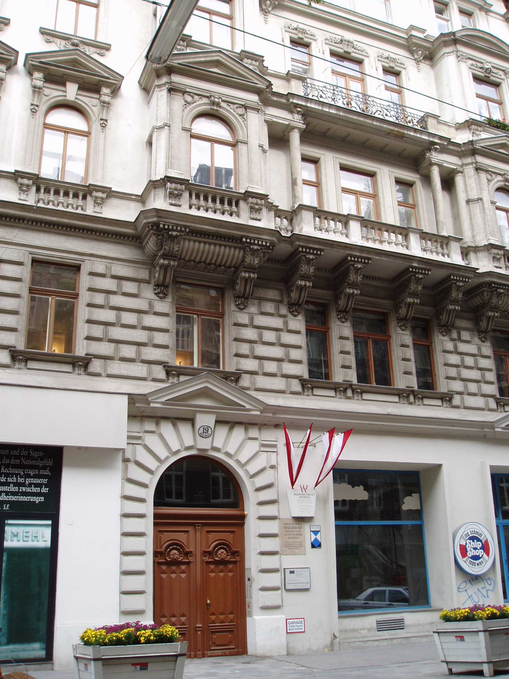 「ジグムント・フロイト記念館」に向かう。道に迷い、近くを歩 いていた男性に道を聞く。相手がドイツ語しか話せないためジェス チャーでの会話だったが、だいたい言いたいことはわかった。その通りを歩いた。また若い女性達が歩いていて、すれ違う時「中国人ですか?」と話しかけられ た。 ヨーロッパの人間に、日本人と中国人を見分けるのは困難だろう。我々がドイツ人とオーストラリア人を見分けられないように。その後は何を言っているかわか らずに「What?」を連呼していた私に愛想をつかしたのか、それとも飽きたのかどこかへ行ってしまった。こんな時洗練された行動をとりたいと思う。 ジョークの一つでも浮かべば良いのだが。