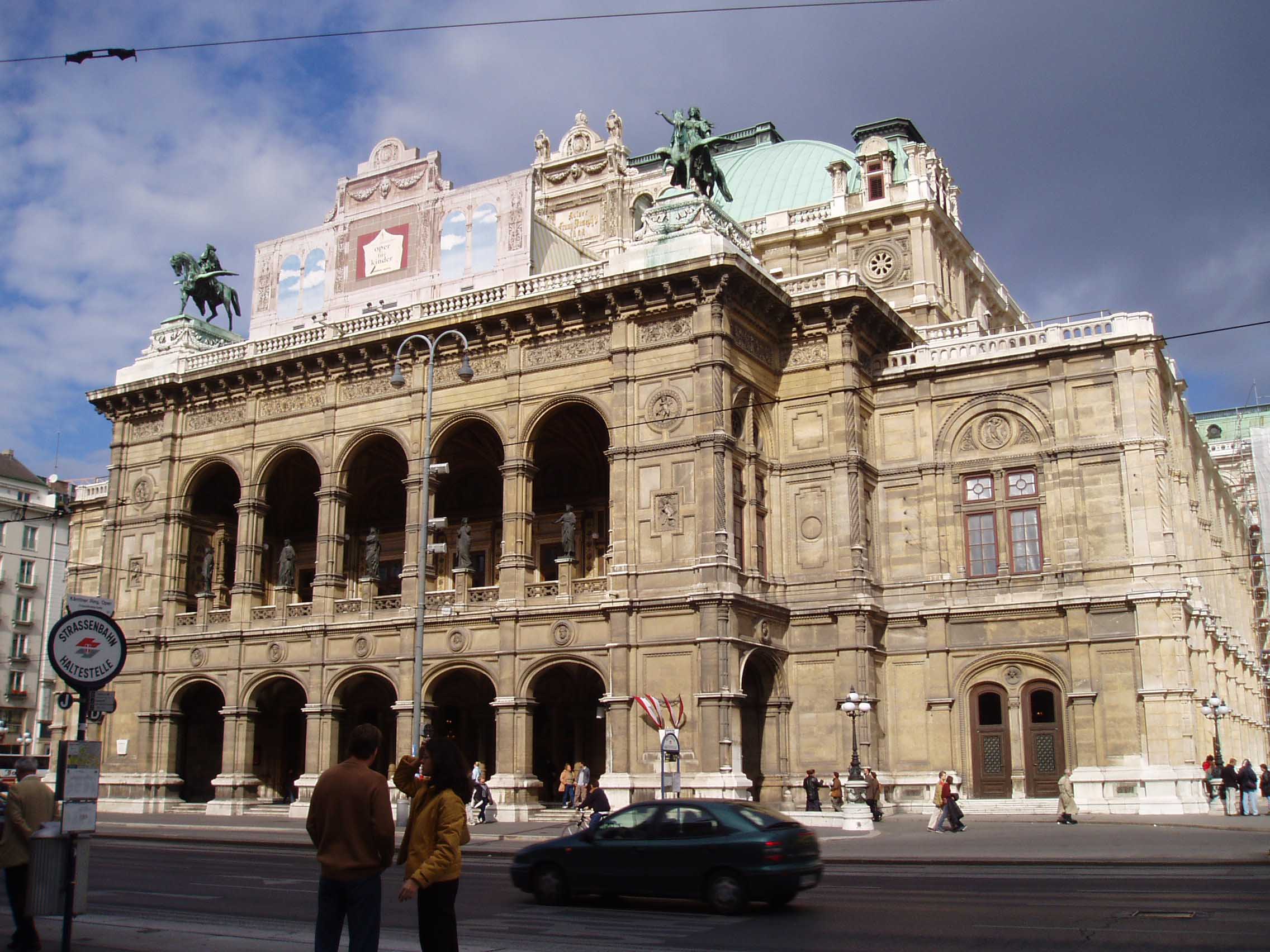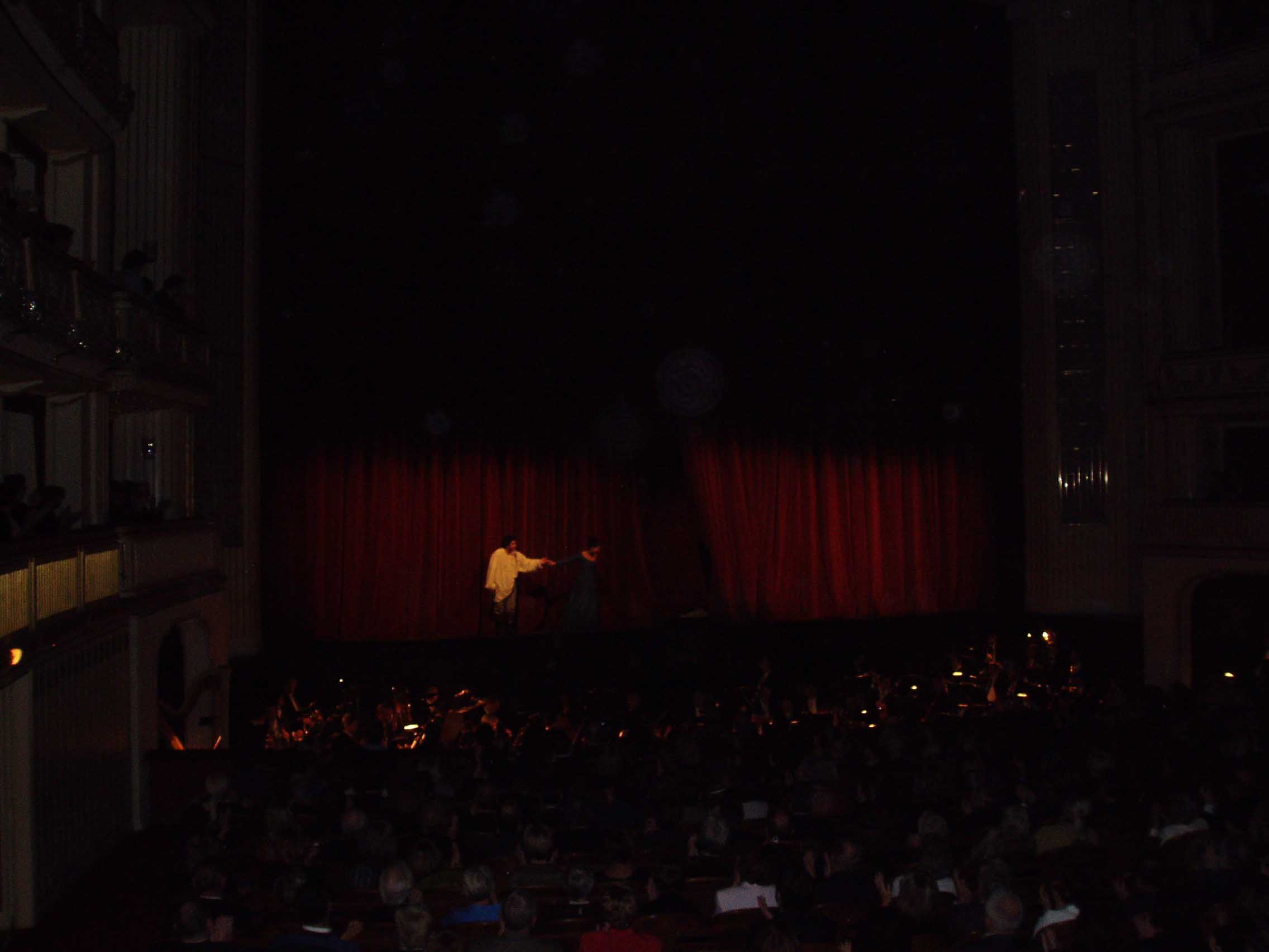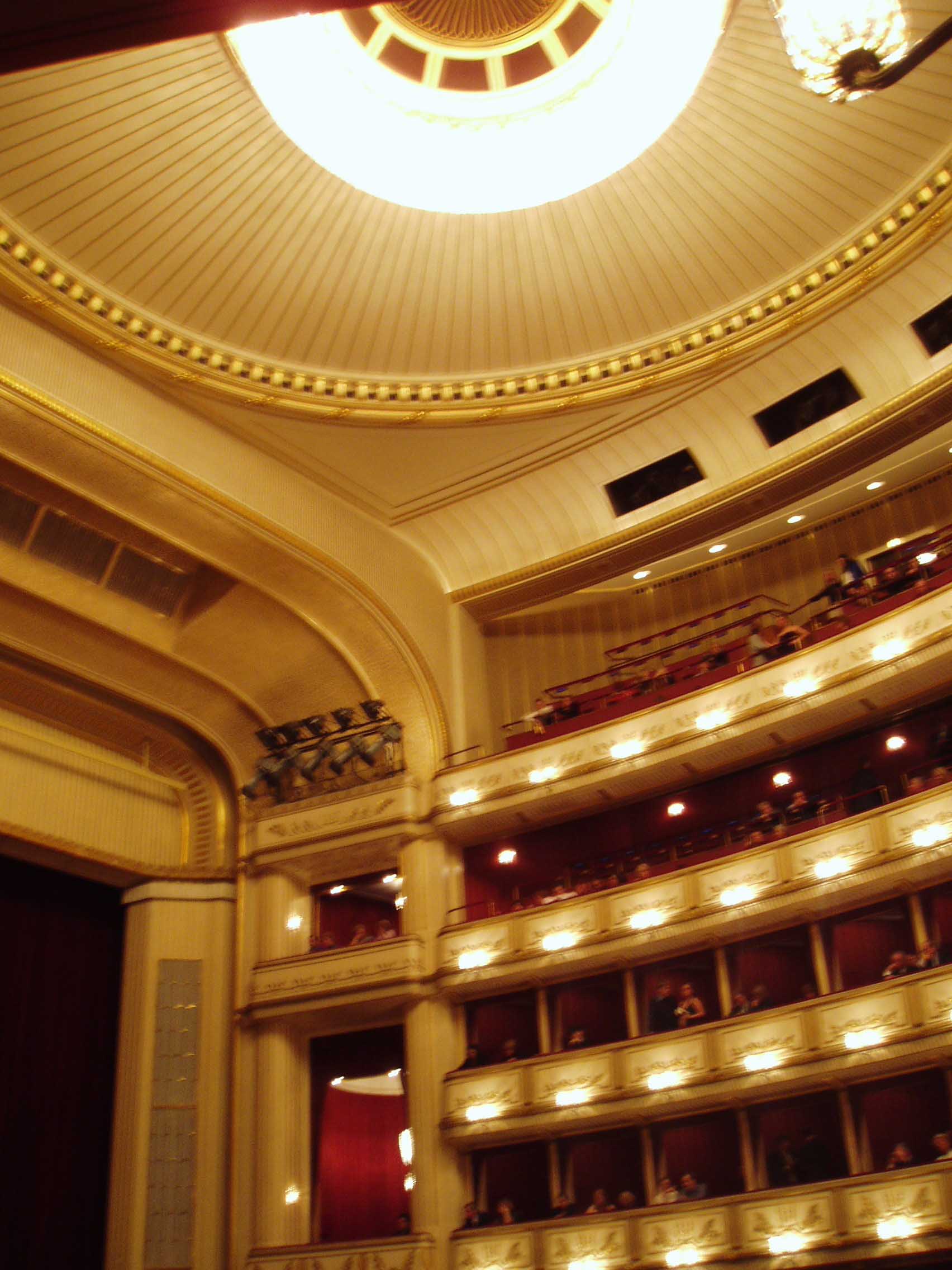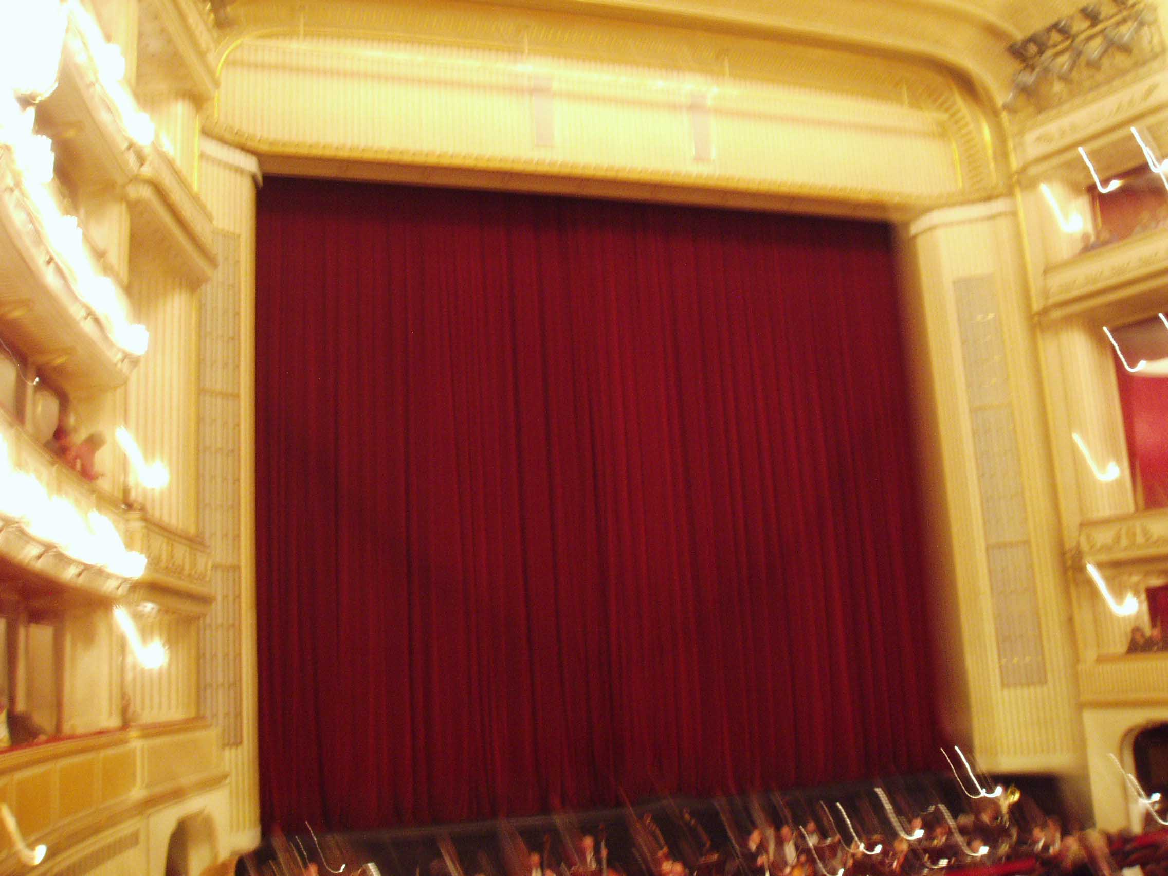 ウィーンに来たからにはオペラを見ずにはいられない。「フェ ドーラ(ジョルダーノ)」というマイナーなオペラのチケットを取ることが出来、ウィーン国立歌劇場を訪れる。2階ボックス席から会場を見渡す。正装した紳士達の姿が多い。ウィーンではオペラは社交場で、 それなりの服装をしてこなければならない。場内にアナウンスがあり、少し笑い声が流れた後、序曲が流れ幕が開いた。